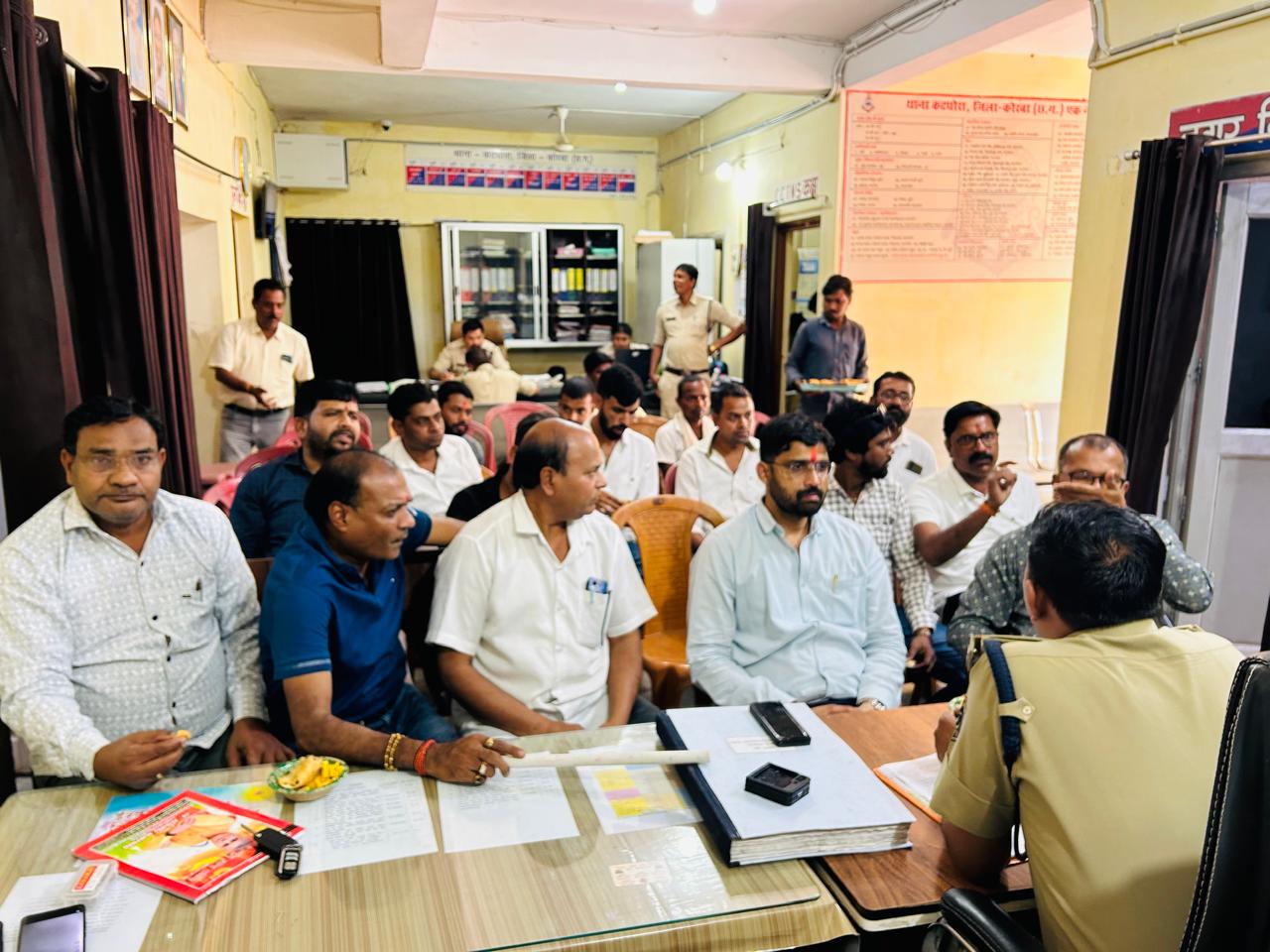 कटघोरा। आज थाना कटघोरा में होली एवं रमजान पर्व शांति पूर्ण ढंग से मनाया जाए इसलिए शांति समिति की बैठक का आयोजन किया गया। थाना प्रभारी धर्मनारायण तिवारी द्वारा शांति पूर्ण पर्व मनाने की अपील की गई । बैठक में नवनिर्वाचित नगर पालिका अध्यक्ष राज जायसवाल के अलावा सभी पार्षदगण उपस्थित रहे। पत्रकार संघ, श्रमजीवी पत्रकार संघ के पदाधिकारी एवं सदस्य गण के अतिरिक्त नगर के गणमान्य नागरिक भी उपस्थित थे।