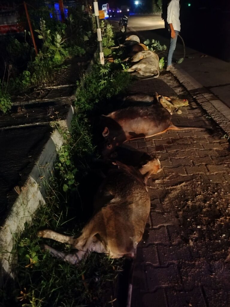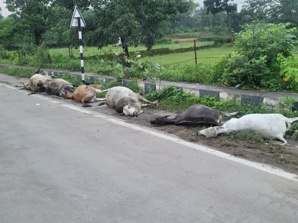 झुंड में बैठे मवेशियों को अज्ञात टेलर वाहन ने रौंदा, 10 मवेशियों की दर्दनाक मौत