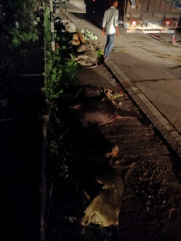 कटघोरा। बीती रात्रि करीब 1 बजे कटघोरा अंबिकापुर एन एच ग्राम चंदनपुर में मवेशियों का झुंड सड़क पर बैठे थे तभी किसी अज्ञात ट्रेलर चालक ने लापरवाही पूर्वक वाहन चलाते हुए रौंद दिया गया जिससे 10 मवेशियों की घटनास्थल पर ही मौत हो गई और कई मवेशी तड़पते रहे । घटना के बाद घंटों तक आवागमन बाधित रहा और सैकड़ों वाहन कतारबद्ध खड़े रहे। कटघोरा पुलिस द्वारा मौके पर पहुंचकर मृत एवं घायल मवेशियों को वाहन चालकों की मदद से किनारे करवाया गया तब कही जाकर जाम खुल पाया।