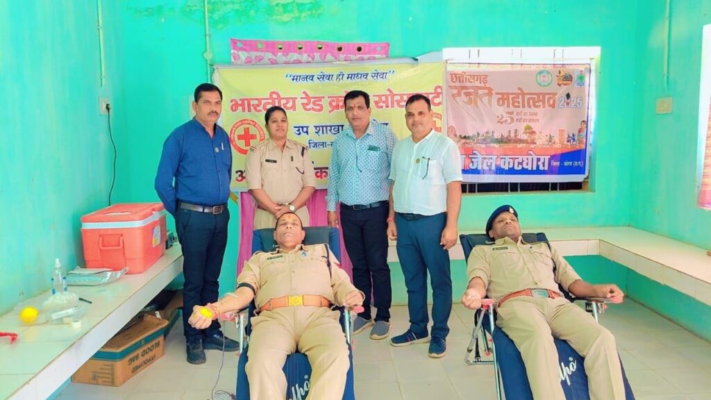 कटघोरा। विश्व व्यापी समाजसेवी संस्था भारतीय रेड क्रॉस सोसायटी उप शाखा समिति कटघोरा एवं जिला में पीड़ित मानवता की सेवा के लिए सतत् सक्रिय एसजेआर फाउंडेशन व कटघोरा ब्लड बैंक के संयुक्त तत्वावधान में छत्तीसगढ़ राज्य के 25 वर्ष पूर्ण होने पर रजत जयंती वर्ष के अवसर पर कटघोरा स्थित उप जेल परिसर में रक्तदान शिविर का आयोजन किया गया।