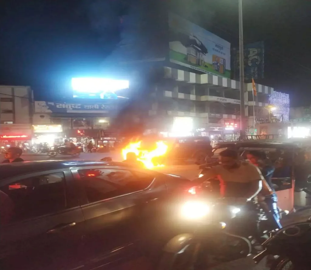 चलती थार में लगी आग, कार जलकर राख :बिलासपुर में बड़ा हादसा टला