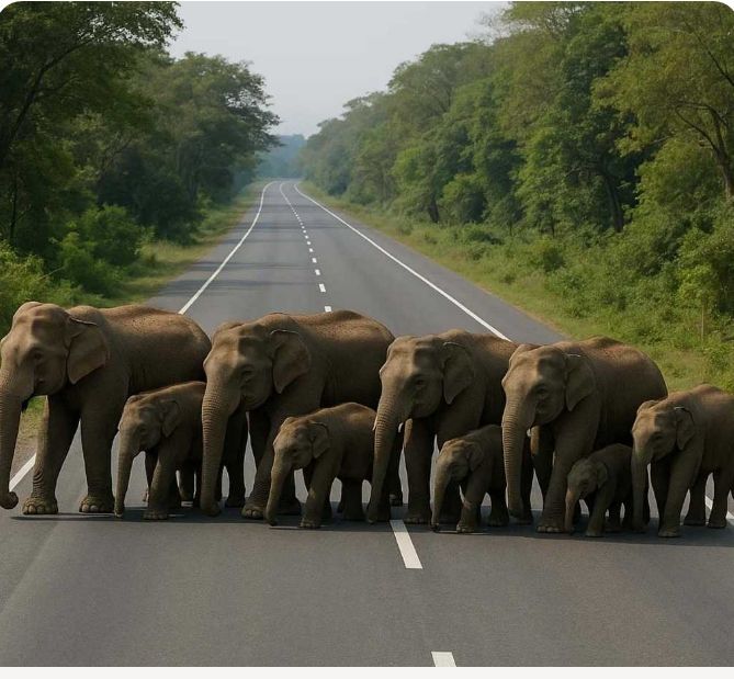 11 हाथियों के दल ने स्टेट हाईवे किया जाम : वन विभाग मुस्तैद
