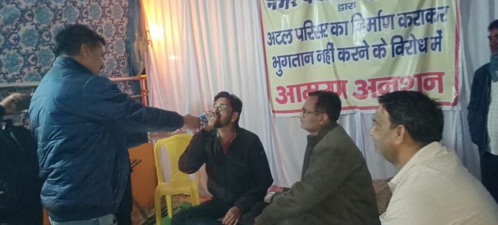 सीएमओ के लिखित आश्वासन के बाद ठेकेदार ने आमरण अनशन किया समाप्त