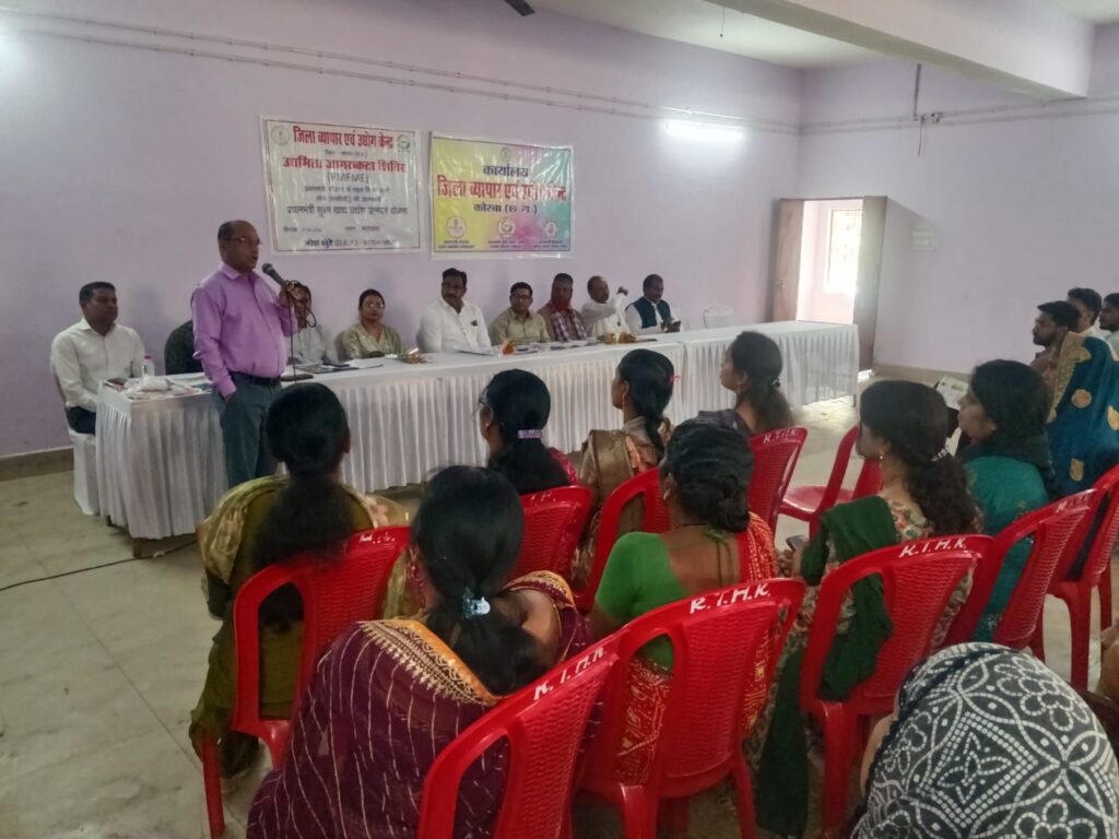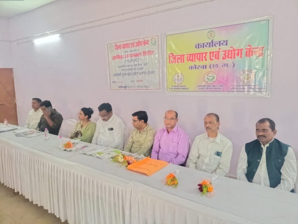 कटघोरा। जिला व्यापार एवं उद्योग केन्द्र कोरबा द्वारा जिले के शिक्षित बेरोजगार युवाओं एवं भावी उद्यमियों को स्वरोजगार से जोड़ने के उद्देश्य से एक दिवसीय उद्यमिता जागरूकता शिविर का आयोजन सांस्कृतिक भवन पुराना नगर पालिका कार्यालय के सामने कटघोरा में आज दोपहर 12 बजे से आयोजित किया गया है। शिविर में प्रधानमंत्री सूक्ष्म खाद्य उद्यम उन्नयन योजना एवं प्रधानमंत्री रोजगार सृजन कार्यक्रम के अंतर्गत अनुदानित ऋण हेतु मार्गदर्शन प्रदान किया गया । साथ ही विभागीय अधिकारियों द्वारा ऋण प्रक्रिया, पात्रता शर्तों एवं प्रोजेक्ट रिपोर्ट तैयार करने संबंधी जानकारी दी गई। शिविर में विवेक अग्रवाल ( विश्वकर्मा इंडस्ट्रीज, कटघोरा ),शेखर साहू ( मुरली बेकरी कटघोरा ),चंचल श्रीवासतव ( मैनेजर – जिला उद्योग एवं व्यवपार केंद्र कोरबा ),अहमद खान ( मोटिवेटर एवं बिजनेस कोच ),नरेश खूंटे ( DRP जिला उद्योग एवं व्यवपार केंद्र कोरबा ),रब्बानी अली ( नगर पालिका कटघोरा ), चन्दन बघेल पत्रकार एवं अधिवक्ता,नीतू साहू ( ब्रांच मैनेजर SBI कटघोरा ), उपेंद्र राठौर ( पी एल व्ही ),रमा साहू ( समाज सेविका ),रवि सोनी ( पी एल व्ही ),सेवकी टंडन ,रेवती साहू ,गौतम दिवान ,महेंद्र टंडन , नीलकमल चौधरी , हिना महंत एवं सुचित्रा मानिकपुरी विशेष रूप से उपस्थित रहे।